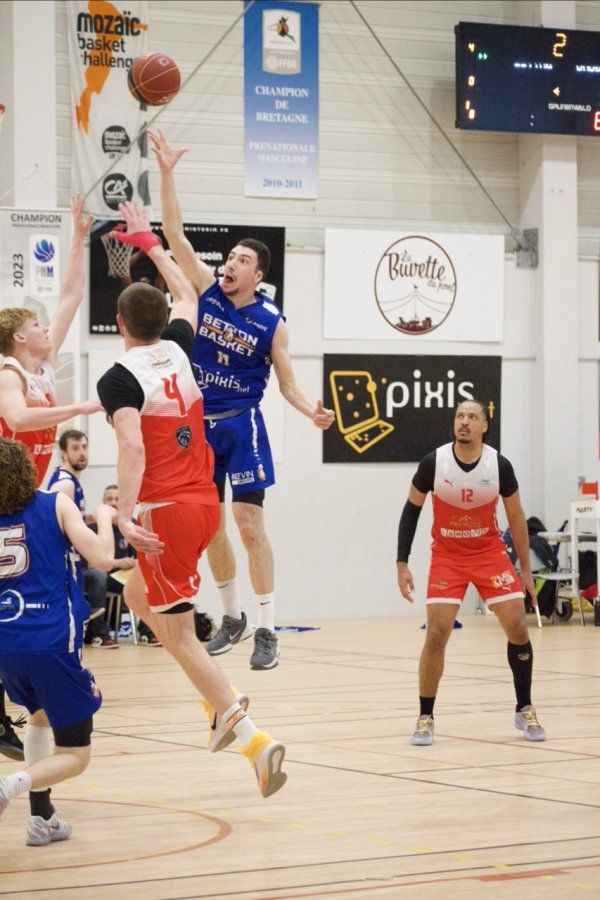 Au retour des vestiaires, un mano à mano s’installe. Pornic repassera pour la première fois devant dès les premières minutes. Nous allons tout de suite reprendre les commandes, mais concéder de nouveau un panier derrière. Ce sera la seule et dernière fois que notre adversaire fera la course en tête, puisque notre intensité défensive nous permettra de gratter de nombreux ballons et de les fructifier en attaque.